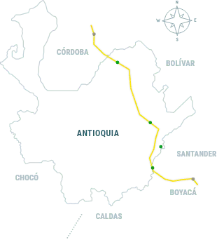 En su paso por Antioquia, el oleoducto cuenta con las estaciones Chiquillo y Caucasia, y la base Puerto Berrio. En Puerto Serviez, límite entre Boyacá y Antioquia, el tubo del oleoducto viene de la estación Vasconia, en Boyacá, y pasa por debajo del río Magdalena hasta llegar a la estación Chiquillo en Remedios, Antioquia